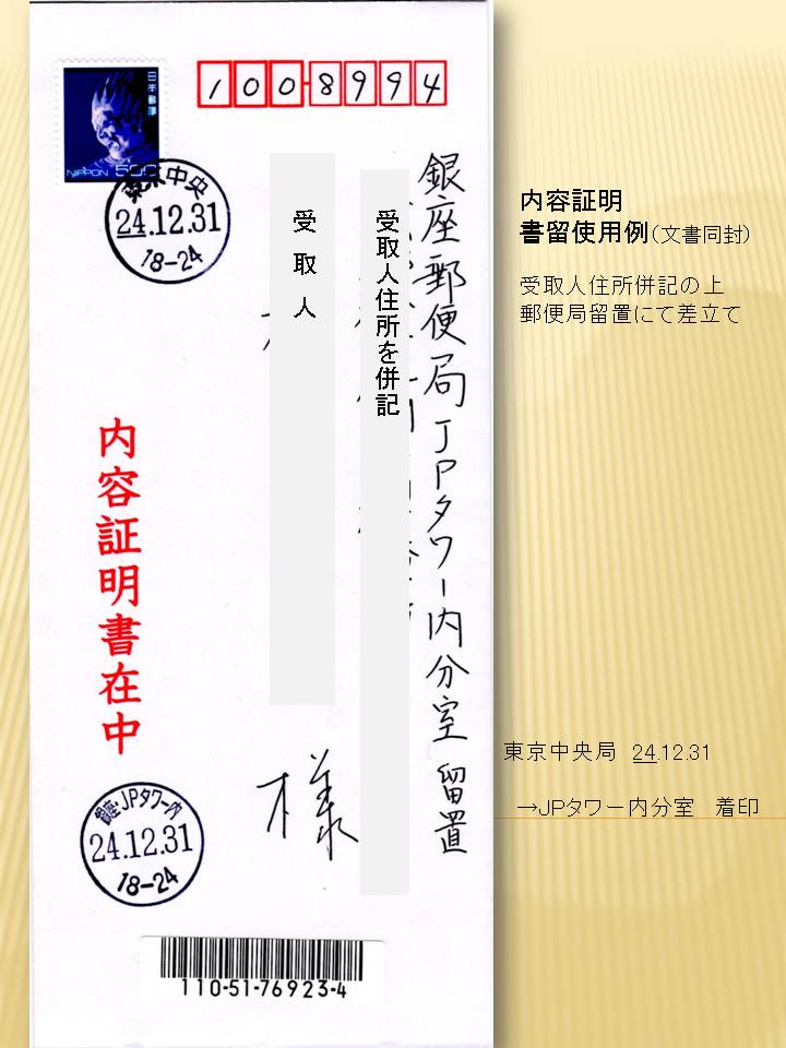 なお内容証明郵便については、郵便局で頼めば普通に対応していただけます。